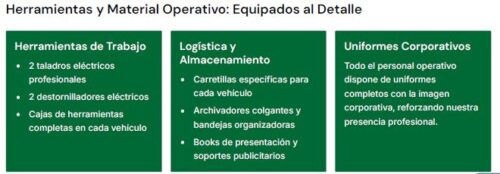 ➡️ Operational tools: uniforms, transport carts, brochure stands, toolkits, and materials in excellent condition